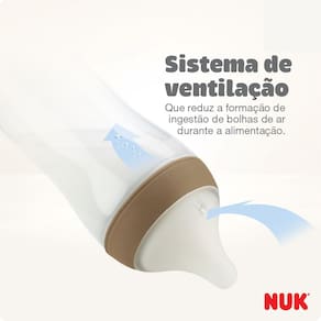 Seu bico em silicone antivazamento conta com sistema de ventilação que reduz a formação e ingestão de bolhas de ar durante a alimentação.