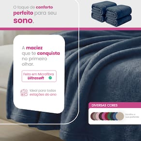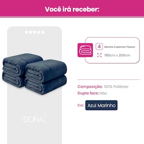 Kit 4 Manta Cobertor Casal Microfibra Super Macio Com Conforto Térmico Premium Casa Dona - Azul Marinho