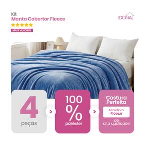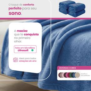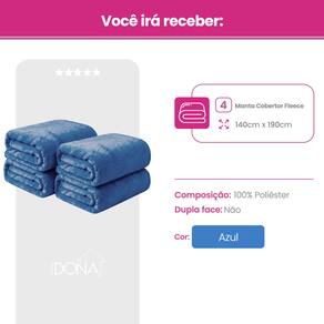 Kit 4 Manta Cobertor Casal Microfibra Super Macio Com Conforto Térmico Premium Casa Dona - Azul