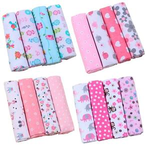 Principais características: Contém 4 unidades. Composição: 100% algodão e com toque flanelado Idade: a partir do primeiro dia de vida Medidas: 80 cm x 80 cm Bainha em overloque para não desfiar Não da bolinha Não solta tinta