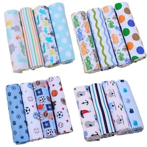 Principais características: Contém 4 unidades. Composição: 100% algodão e com toque flanelado Idade: a partir do primeiro dia de vida Medidas: 80 cm x 80 cm Bainha em overloque para não desfiar Não da bolinha Não solta tinta