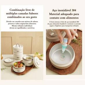 Kit 4 Marmitas Térmica Redonda + Bolsa Térmica 420ML 620ML Cor: Creme KIT 4 unidades Marmita Térmica com Alça e Respiro -