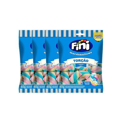 MARSHMALLOWS FINI TORÇÃO Marshmallows Fini, são deliciosos, macios, divertidos, coloridos e ricos em todos os detalhes. Opção ideal para deixar dias mais saborosos, decorar festas, dar ainda mais beleza a pratos de confeitaria e complemente ideal para seu café, cappuccino e/ou chocolate quente. No formato torcido, na cor rosa com azul e amarelo, no sabor de baunilha. Ean: 7898279791162 Ean: 7898279791162