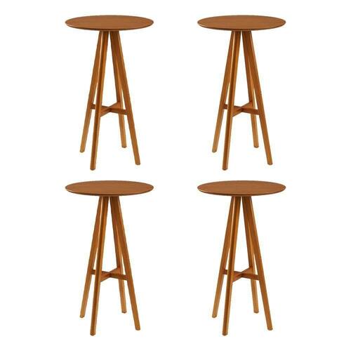 AS IMAGENS SÃO MERAMENTE ILUSTRATIVAS E PODEM SOFRER VARIAÇÕES DE COR E PEQUENOS DETALHES DE ACORDO COM O SEU MONITOR, ILUMINAÇÃO DO AMBIENTE E ATÉ MESMO A SUA PERCEPÇÃO VISUAL.Kit 4 Mesas Bistrà Alta Redonda Sila Base Madeira MaciÃa Mel