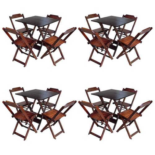 Kit 4 Conjuntos De Mesa Com 4 Cadeiras De Madeira Dobravel 70x70 Imbuia