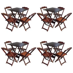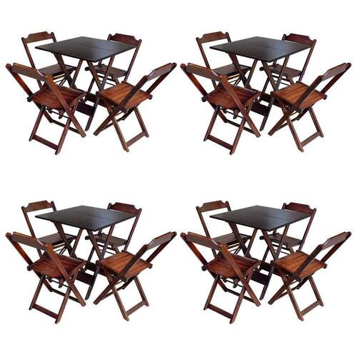 Kit 4 Mesas Dobraveis 70x70 Em Madeira Padrão Com 4 Cadeiras - Imbuia - Cor: Marrom