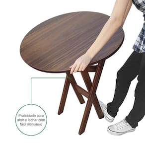 Kit 4 Mesas Dobráveis De Madeira Redonda 90cm Imbuia - TarimatãA Mesa redonda dobrável é ideal para bares, restaurantes, estabelecimentos, áreas de lazer e também para sua casa. Em madeira maciça tornando resistente e durável. Seu design permite ser encaixado em qualquer ambiente, trazendo um toque a mais para seu estabelecimento. Além de sua durabilidade, o que lhe trará conforto para servir seus clientes. Por ser dobrável torna-se mais fácil guardar, manusear e limpar o produto.CARACTERÍSTICASTipo: Mesa DobrávelModelo: RedondoCor: ImbuiaDIMENSÕES DA MESAAltura: 77cmAltura fechado: 98cmDiâmetro: 90cmAtenção: EVITE USAR PRODUTOS ABRASIVOS E QUÍMICOS PARA LIMPEZA DO PRODUTO, aconselha-se o uso de pano umedecido para melhor conservação; mantenha o produto fora de chuva e sol constantes.ATENÇÃOIMAGENS MERAMENTE ILUSTRATIVAS REALIZADO EDIÇÃO, PODENDO HAVER UMA PEQUENA VARIAÇÃO DE COR DEPENDENDO DE CADA TELA OU MONITOR.Kit 4 Mesas DobrÃveis de Madeira Redonda 90cm Imbuia - TarimatÃ