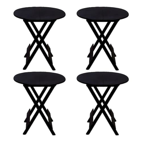 Kit 4 Mesas Redondas Dobráveis Em Madeira Maciça 70X70 Preto Ideal Para Bares E Restaurantes