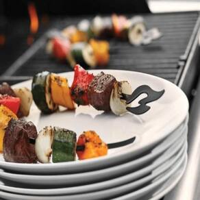 Seu design curvo mantém os petiscos no espeto e impede que escorreguem por suas extremidades.