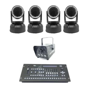 Kit 4 mini moving beam + máquina de fumaça 600w + mesa pilot