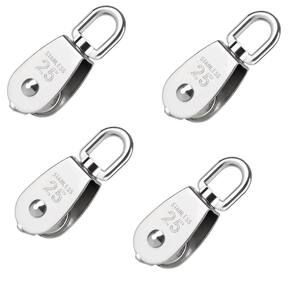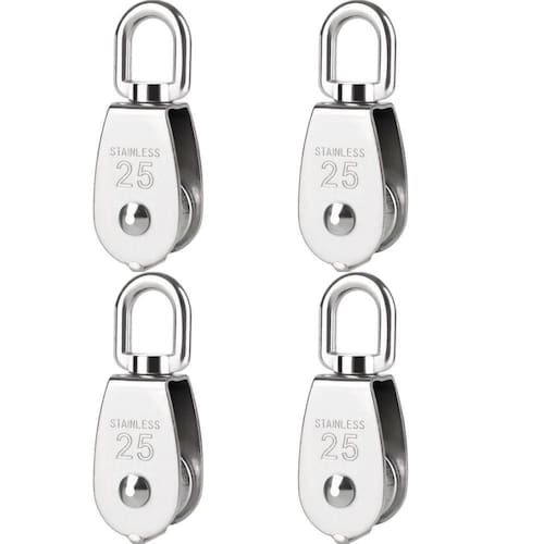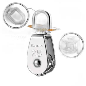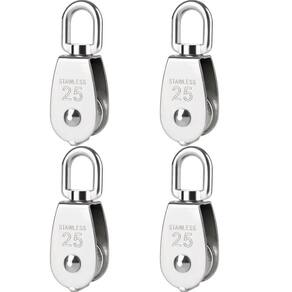 INFORMAÇÕES ADICIONAIS: Material: Aço inox 316. Tamanho: N25. Carga máxima: 150 kg. Dimensões: 85mm x 30mm x25mm x23mm Contém alça destorcedor. Alta resistência e durabilidade. Projetado para pendurar objetos de peso para aliviar cargas Aplicação: Amplamente utilizado no esforço de tração de cabos de aço ou outras ferramentas de cabos. Uma corda, cabo, correia ou corrente geralmente passa sobre a roda e dentro da ranhura, se houver