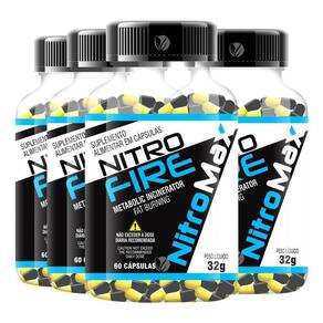 Nitro Fire Cafena 420mg 60 cpsulas Nitromax Kit 4 potes Composio: Cafena, riboflavina, excipiente .S.P estearato de magnsio. Apresentao: Pote com 60 cpsulas. Sugesto de uso: Ingerir 1 cpsula ao dia. Conservao: Aps aberto, manter a embalagem bem fechada e armazenar em local fresco e ao abrigo de luz. Produto lacrado para sua proteo. No utilizar em caso de violao. Manter fora do alcance de crianas. produto dispensado de Registro conforme RDC 27/2010. Marca: Não Informado