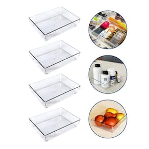 Kit 4 Organizador Grande Gavetas Multiuso Acrílico Transparente Empilhável 23x17x5,5Cm Cozinha Geladeira
