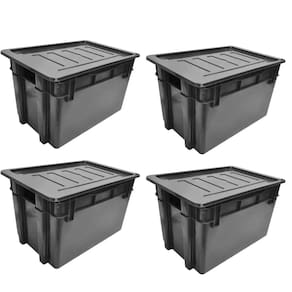 Kit 4 organizador multiuso caixa 60 lts preta com tampa Caixa multiuso fechada 60 litros black