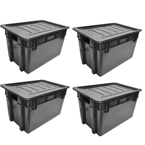 Kit 4 organizador multiuso caixa 60 lts preta com tampa Caixa multiuso fechada 60 litros black