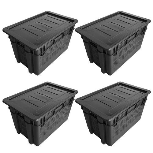 Kit 4 organizador multiuso telada reforçada 60l com tampa Caixa multiuso telada 60 litros black