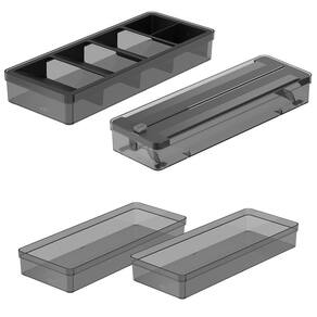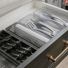 ASPEN DECOR F6361 Kit 4 Organizadores Clear Aspen Decor Modular Transforme suas gavetas em espaços organizados e práticos com o Kit Clear. Ideal para cozinhas, escritórios ou qualquer ambiente, ele oferece transparência, modularidade e praticidade para atender às suas necessidades de organização. Conteúdo do Kit: 02 - Organizador de Gavetas Clear Modular Medidas: 37,5 x 15 x 5,6 cm 01 - Organizador de Talheres Clear com ícones de setorização Medidas: 37,5 x 15 x 5,6 cm 01 - Organizador e Cortador de Rolos Duplo Clear Medidas: 37 x 12 x 6 cm Destaques do Produto: Transparência impecável para facilitar a visualização. Design modular para diversas composições e máximo aproveitamento do espaço. Ideal para rolos de plástico filme, papel alumínio e papel com corte perfeito. Ventosas estabilizadoras para uso em gavetas ou bancadas. Especificações Técnicas: Material: Polipropileno resistente e BPA Free. Dimensões: Organizadores: 37,5 x 15 x 5,6 cm Cortador de Rolos: 37 x 12 x 6 cm Capacidade do cortador: 2 rolos de até 30 metros. Aviso Importante: As cores dos produtos podem apresentar variações em relação às imagens exibidas devido à calibração do monitor ou smartphone. - Atenção: Os objetos que ambientam as fotos não acompanham o produto. Imagens meramente ilustrativas. - Observação: Confira as dimensões do produto no momento da compra As dimensões estão detalhadas na descrição para garantir que ele seja exatamente o que você procura. Marca: Não Informado Ean: 7794153933874