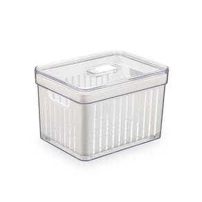 - Capacidade: 2,8 Litros- Dimensões: 15cm (Comprimento) x 15cm (Largura) x 13cm (Altura)- Cor: Transparente e Cesto BrancoFUNÇÕES E CARACTERÍSTICAS:- Organização eficiente de alimentos- Tampa removível para fácil acesso