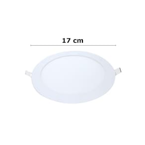 Informações técnicas: LED integrado Potência: 12W Temperatura: 6500K Emissão de luz branca Diâmetro: 17 cm Forma: Redondo Lúmens: 720 IRC: =70 Ângulo de abertura: 120 Material: Corpo em alumínio, difusor em vidro, corpo do driver em plástico Eficiência luminosa: 60lm/W Painel de embutir Vida útil: 25 mil horas L70 Pode ser ligado diretamente na rede elétrica em 127V ou 220V Espessura do forro deve ser pelo menos 1cm Não permite dimerização