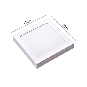 Informações técnicas: LED integrado Potência: 12W Temperatura: 6500K Emissão de luz branca Medida: 17x17 cm Forma: Quadrado Lúmens: 720 IRC: =70 Ângulo de abertura: 120 Material: Corpo em alumínio, difusor em vidro, corpo do driver em plástico Eficiência luminosa: 60lm/W Painel de sobrepor Vida útil: 25 mil horas L70 Pode ser ligado diretamente na rede elétrica em 127V ou 220V Não permite dimerização