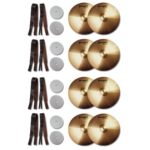Kit 4 Par Prato 16 Fanfarra Dreamer Cymbals Latão Brilhante + 4 Par de Alça Com Feltro Para Prato Fanfarra Marcial Couro