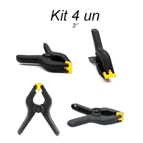 Kit 4 Pcs Grampo Multiuso 3 Pol. 75mm Marceneiro Reforçado Grampo Multiuso 3 Polegadas Ferramenta Certa Especificações: - Super resistente e leve.- Ideal para mobilização de objetos em superfícies planas ou bancadas.- Auxilia em atividades de colagem de madeiras e outros materiais- Fácil Manuseio- Cabo com sistema de mola- Mordentes de plásticos articulados- Fabricado em material de alta performance- Ferramenta essencial para Marceneiro, Carpinteiro, Pedreiro Entre Outros. Dados Técnicos: - Tamanho: 3 75mm - Abertura: 4cm- Composto em fibra de nylon.- Mola resistente em aço Itens Inclusos:4x Grampo de Pressão Multiuso 3 Polegadas Marca: Ferramenta Certa