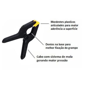 Kit 4 Pcs Grampo Multiuso 3 Pol. 75mm Marceneiro Reforçado Grampo Multiuso 3 Polegadas Ferramenta Certa Especificações: - Super resistente e leve.- Ideal para mobilização de objetos em superfícies planas ou bancadas.- Auxilia em atividades de colagem de madeiras e outros materiais- Fácil Manuseio- Cabo com sistema de mola- Mordentes de plásticos articulados- Fabricado em material de alta performance- Ferramenta essencial para Marceneiro, Carpinteiro, Pedreiro Entre Outros. Dados Técnicos: - Tamanho: 3 75mm - Abertura: 4cm- Composto em fibra de nylon.- Mola resistente em aço Itens Inclusos:4x Grampo de Pressão Multiuso 3 Polegadas Marca: Ferramenta Certa