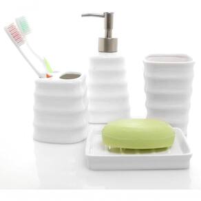 Kit 4pçs Banheiro Lavabo Luxo Modelagem 3d Premuim Cerâmica Kit 4Pçs Banheiro Lavabo Luxo Modelagem 3D Premuim Cerâmica - Transforme Seu Banheiro com Nosso Kit Completo de 4 Acessórios :