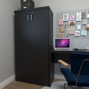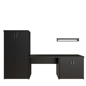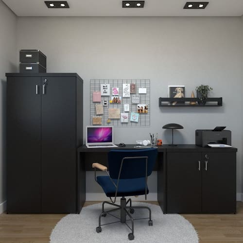 Kit 4 Peças com Escrivaninha, Armário Multiuso Alto, Armário Multiuso Baixo e Prateleira - Preto