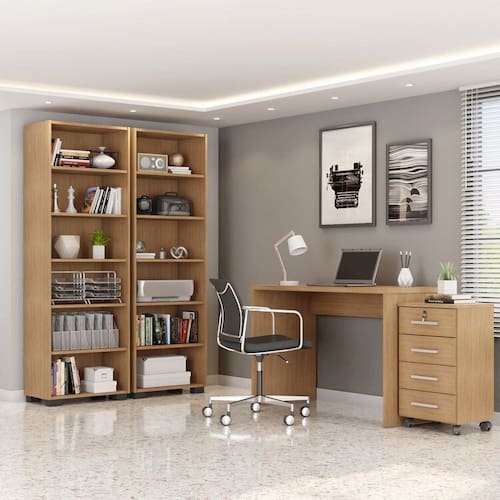 Moderna e versátil, nossa Escrivaninha se encaixa perfeitamente em uma variedade de ambientes, desde um simples local de estudos até um escritório profissional. Feita com MDP de 25mm, é resistente e durável, disponível em quatro cores diferentes. Você pode escolher entre a versão com ou sem gaveta, de acordo com suas necessidades de armazenamento. Para uma composição completa do ambiente, recomendamos também adquirir o livreiro e gaveteiro da linha office. Juntos, esses móveis proporcionam funcionalidade e estilo ao seu espaço de trabalho ou estudo.