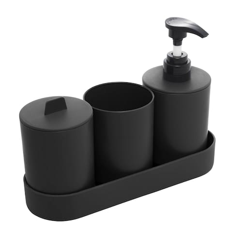 Com quatro peças essenciais - dispenser de sabonete líquido, porta-escova de dentes, porta-sabonete e copo - este conjunto proporciona uma solução completa para manter seu banheiro organizado e livre de bagunças.
