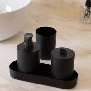 Conjunto 4 Peças para Banheiro PP e Bambu Lyor Preto -