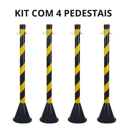 Kit 4 Pedestal 90Cm Zebrado Para Sinalização Preto/Amarelo 4 Pedestal Plástico tipo Balizador modelo Zebrado nas cores Preto e AmareloAltura padrão de 90 cmDESCRIÇÃOBase plástica cônica em polipropileno com 21 cm, com enchimento em concreto. Tubo de PVC com diâmetro de 5cmTampa injetada em Poliacetal2 Ganchos em lados opostos, para fixação de correntes. Peso: 3KgDIMENSÕES: 90x5x21 cmUTILIZAÇÃOSinalizaçãoIsolamento de áreasOrganizações de filasEspecificações Técnicas:DIMENSÕES: 90x5x21 cmUTILIZAÇÃOSinalizaçãoIsolamento de áreasOrganizações de filas marca: PLASTICOR modelo: PEDESTAL ZEBRADO cor: PRETO/AMARELO quantidade de cones: 1 peso: 1.7 kg altura: 90 cm material da base: Plástico e flexivel: Não Ean: 7807944619304