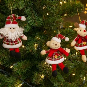 Deixe sua árvore de Natal ainda mais encantadora com o Conjunto 4 Pelúcias Natalinas Pendente, composto por Papai Noel, Boneco de Neve, Ursinho e Rena. Cada personagem possui acabamento premium em pelúcia, detalhes em vermelho xadrez, e roupas com efeito tricô, trazendo charme, aconchego e autenticidade à decoração.