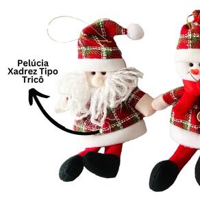 Os quatro personagens vêm no modelo pendente com perna mole, ideal para árvores, guirlandas, arranjos, lareiras ou composições natalinas variadas. Todos possuem cordão para pendurar, gorrinhos e cachecóis decorativos que valorizam ainda mais o visual.