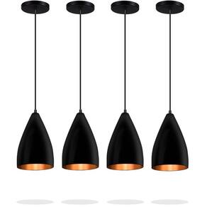 Kit 4 Pendentes Vegas Preto Textura / Cobre R.R.J.V