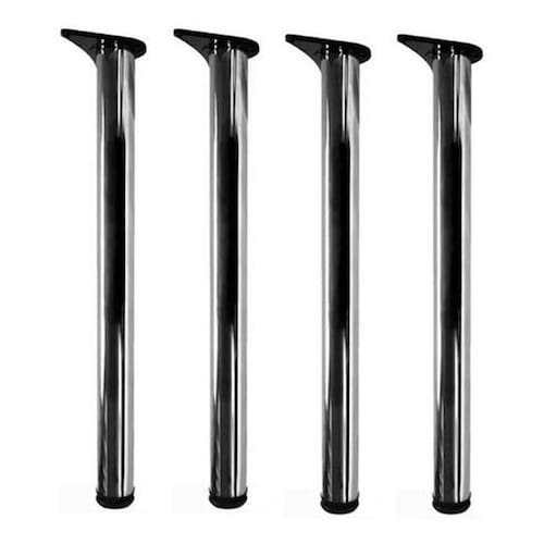 Descrição: Pés de mesa para tamposMaterial: Aço e plásticoCapacidade: 75 kgRegulagem inferior.Embalagem: Caixa com 4 unidades (1 conjunto). Acompanha kit com 4 parafusos para fixação da base e 20 parafusos para fixação do tampo.Observações: Recomenda-se utilizar em tampos com espessura mínima de 28 mm.