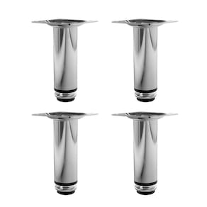 Características do Produto: Alturas disponíveis: 8cm, 10cm, 12cm, 15cm e 20cm. Regulagem ajustável: até +1cm, garantindo nivelamento em qualquer superfície. Material: Metal de alta resistência e durabilidade. Design: Moderno, redondo e cromado, ideal para diversos estilos de decoração. Fixação segura: 4 parafusos por pé para máxima estabilidade. Capacidade de carga: Suporta até 100kg por pé.