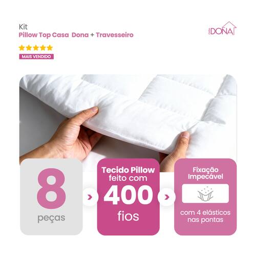 Marca: Casa Dona Modelo: Pillow Top Dimensões: 1,88 m (Comprimento) x 1,38 m (Largura) x 5 cm (Altura) Compatibilidade: Para colchões com até 40 cm de altura
