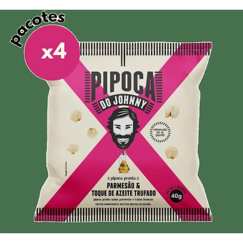 Kit 4 Pipoca Pronta Parmesao E Azeite Trufado 40g Do Johnny A Pipoca do Johnny surgiu para tornar seu dia a dia muito mais gostoso, leve e fácil. A Pipoca que era disputada em casa com os amigos foi crescendo para uma barraquinha em festas no Rio de Janeiro e hoje está aqui, em pacote, para você comer onde e quando quiser.