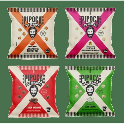 Kit 4 um Und de Cada Sabor Pipoca Pronta Sour Cream 40g Do Johnny Pipoca Pronta Parmesao E Azeite Trufado 40g Do Johnny Pipoca Pronta Caramelo com Flor de Sal 75g do Johnny Pipoca Pronta Brownie 75g Do Johnny A Pipoca e da Batata do Johnny combinam praticidade e sabor. Com ingredientes selecionados, esses produtos oferecem um toque especial aos lanches, alinhando-se à proposta de qualidade e tornando a experiência de compra única. A Pipoca e a Batata do Johnny são produtos com identidades únicas. Com a crescente demanda por snacks saudáveis e descolados, nossos produtos se encaixam por serem para todos os momentos do dia e para todos os públicos, de crianças ao público sênior. A Pipoca do Johnny surgiu para tornar seu dia a dia muito mais gostoso, leve e fácil. A Pipoca que era disputada em casa com os amigos foi crescendo para uma barraquinha em festas no Rio de Janeiro e hoje está aqui, em pacote, para você comer onde e quando quiser. Que doce e salgado ficam excelentes juntos já não é mais novidade, né Mas essa versão de Caramelo e Flor de Sal conseguiu superar todas as expectativas. Crocante e deliciosa na medida certa, ela está viciante. INGREDIENTES Açúcar demerara, milho de pipoca estourado, xarope de glucose, óleo de girassol, açúcar mascavo, , cacau em pó, sal, aromatizante e emulsificante lecitina de soja. RESTRIÇÃO ALIMENTAR Alérgicos: Contém derivados de soja. Pode conter leite, aveia, trigo, centeio, cevada, amêndoas, avelãs, castanha de caju, castanha do Pará, nozes, macadâmia, pecã, pistache e castanhas. Contém glúten. Produto pronto para o consumo.