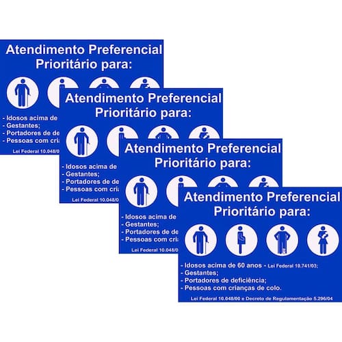 Kit 4 Placa Aviso Atendimento Preferencial 30Cmx20Cm Pvc