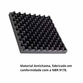 Informações técnicas Dimensões: 50cm x 50cm Espessura: 3 cm Modelo: caixa de ovo Cor: cinza grafite Densidade: 26 kg/m Células abertas para uma boa absorção Chanfrada nas bordas em 40 graus para um melhor acabamento e junção entre as placas Marca: Armazém Das Espumas