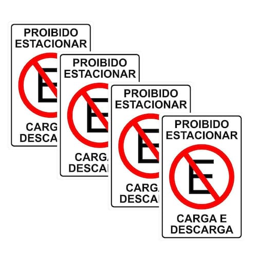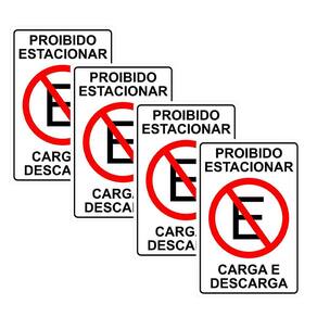 Kit 4 Placa Proibido Estacionar Carga Descarga 30Cmx20Cm Pvc