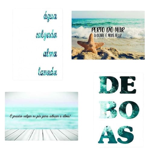 Kit 4 placas decorativas 20 x 30 cm - Coleção Mar 2 Para os apaixonados pelo mar que não dispensam uma linda decoração de paisagem lançamos a coleção praia e mar. Com estilo tropical, frases inspiradoras, cores vibrantes, estampas criativas e realistas, procuramos trazer a beleza dos mares para perto de você. Confira as opções para decorar sua casa de praia, pousada, escritório, lar ou apartamento. Nossas Placas Decorativas possuem imagens com cores vivas e vibrantes, de espetacular qualidade, com pigmento puro e um dos melhores equipamentos do mundo para impressão em grandes formatos. Características: Altura cm : 0,3cm Largura e Comprimento cm : 20 x 30 cm cada placa Material: MDF de 3 mm, adesivo vinil e fita dupla face. Cor: Colorido Conteúdo da embalagem: 4 unidades Ean: 7900857555346