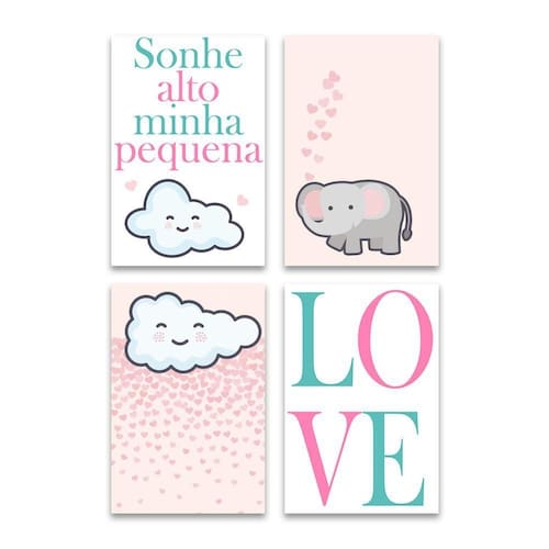 KIT composto por 4 Placas Decorativas de QUALIDADE. Ideal para quarto infantil e muitos outros.