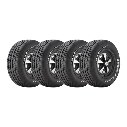O pneu Cobra Radial G/T para todas as estações apresenta letras brancas em relevo para quem prefere conservar o visual característico do seu muscle car. Pneu ideal para o seu carro clássico. Se o seu carro clássico parece pertencer a um anúncio de carro antigo, o pneu Cobra Radial G/T é perfeito para você. Esses pneus apresentam letras brancas em relevo, para combinar com seu veículo. -Estilo com letras brancas em relevo -Projeto para desgaste uniforme -Desempenho em todas as estações