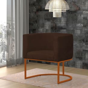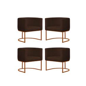 Kit 4 Poltrona Reforçada Decorativa Sala Gabriela Base Ferro Bronze Suede - Marrom
