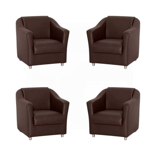 Kit 4 Poltronas Bia Decorativa Reforçada Recepção Clinica Salão Sala De Estar Courino - Marrom