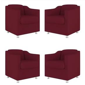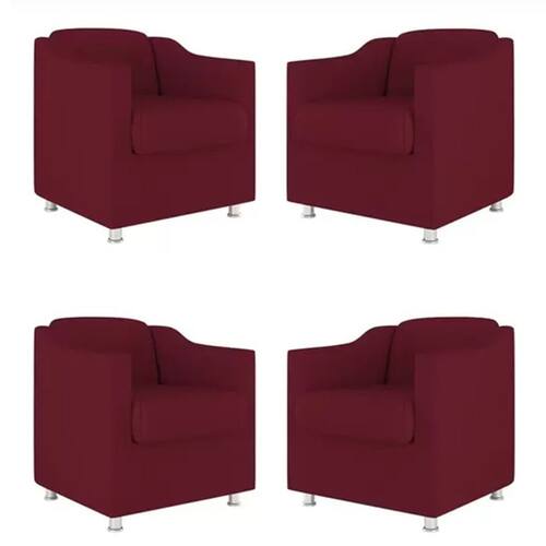 Kit 4 Poltronas Bia Decorativa Reforçada Recepção Clinica Salão Sala De Estar Suede - Vinho